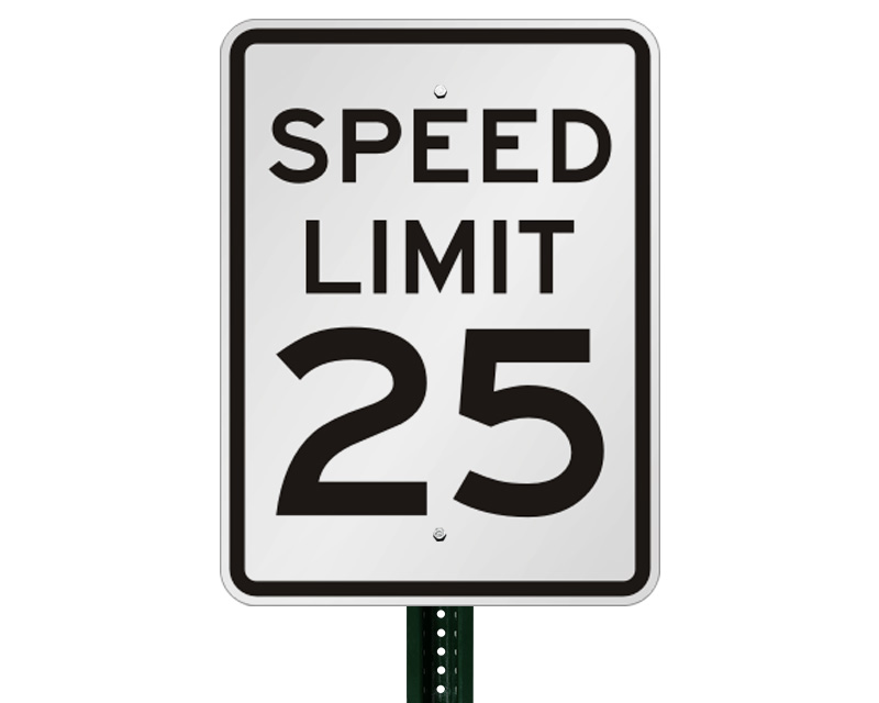 Our 25 MPH signs are available in a variety of different sizes, colors and reflectivities. Choose from one of the designs below.