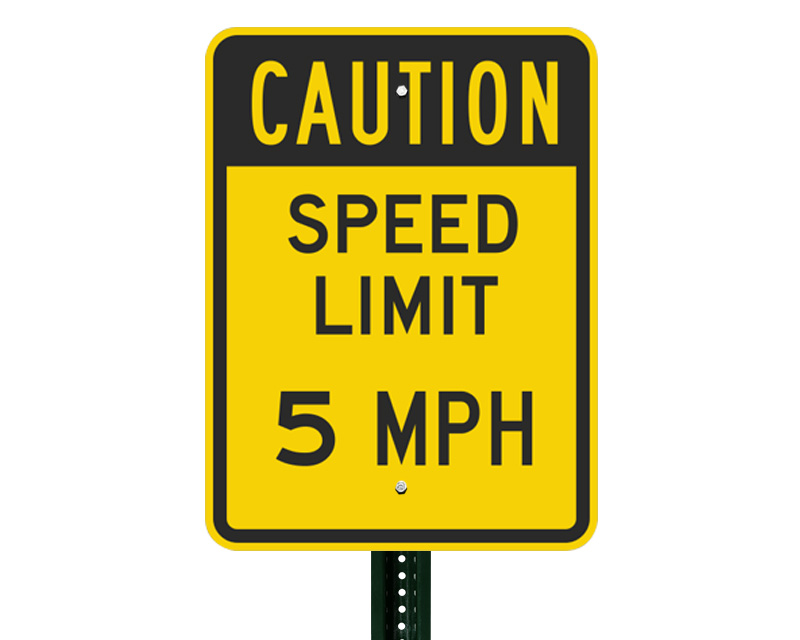 5 miles per hour is a pretty slow driving speed, but it is by far the fastest way to prevent vehicle-pedestrian accidents. Post one of these signs in a parking lot, driveway, narrow road or school zone to get speedy drivers to drive safer. A sign is a constant reminder that safety is the top priority.
