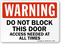 Bold Do Not Block Signs let everyone know that they cannot block the door. Do not compromise the integrity of your fire doors and fire barriers! Show that security is priority. Give instructions to your visitors, employees and guests to not to block the door.