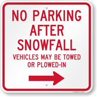 Parking Restriction Sign: No Parking After Snowfall, Vehicles May Be Towed Or Plowed-In (Left/Right Arrow) K2-0791-R