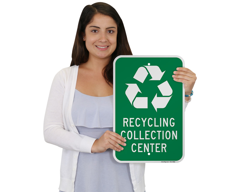 Label your recycling center clearly with bold, visible Recycling Center Signs and Labels. Signs make it easy for sanitation workers to locate the collection center for recyclables and not get it confused with the garbage center.