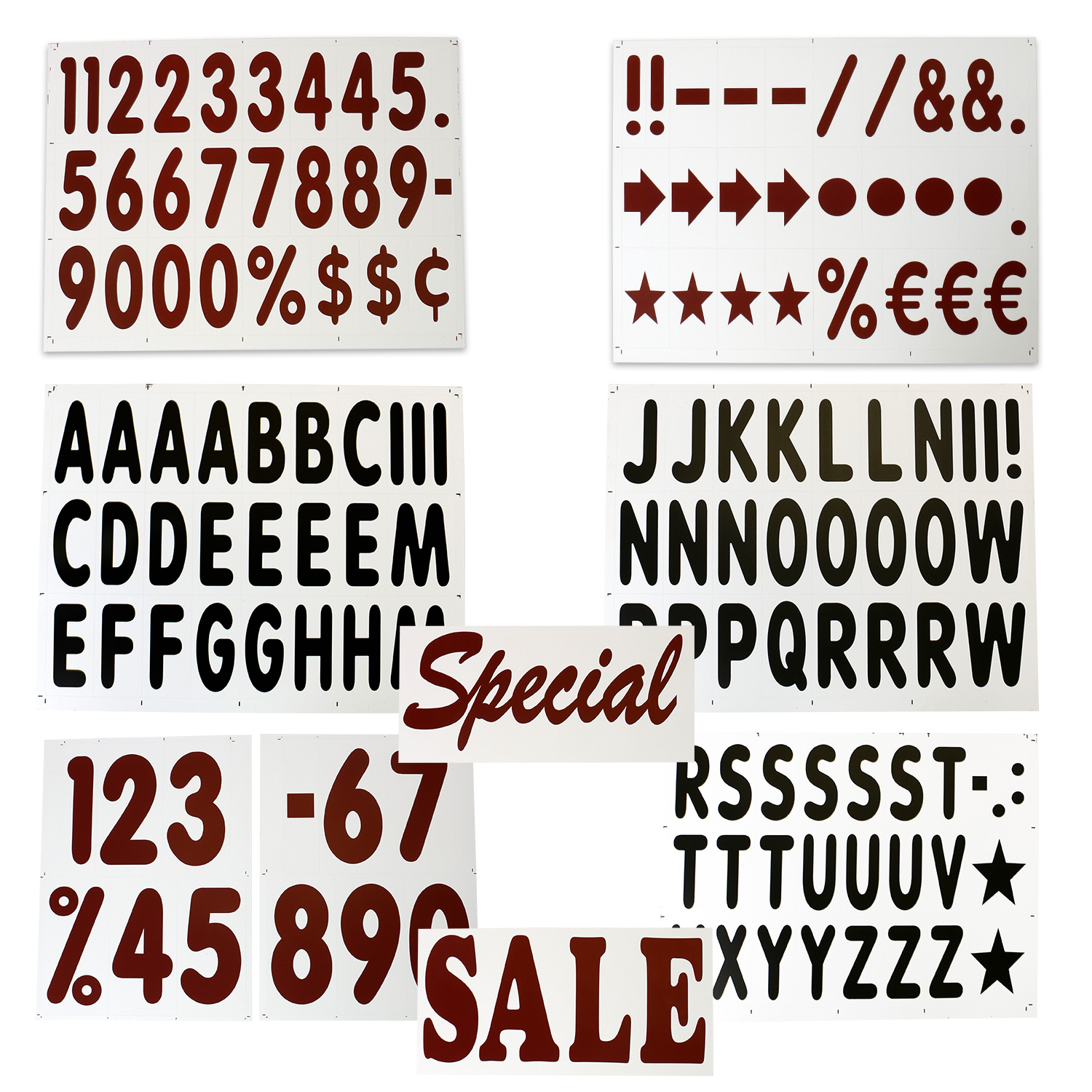 Size: 0" x 0" Material Type: Deluxe Letter & Number Kit with 4" Characters, Jumbo Numbers and Header for White Message Boards Verified PurchaseThe BEST sign!!