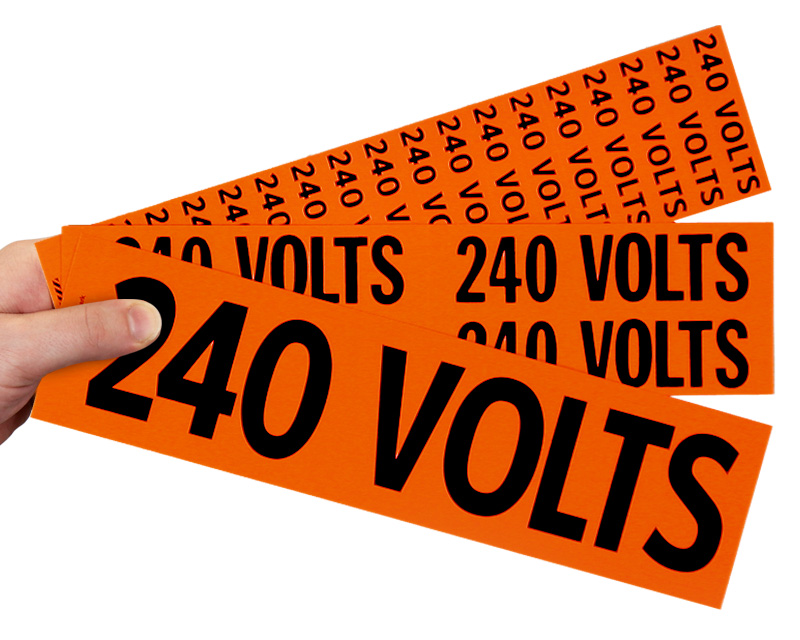 Get the right voltage marker for a price that can't be beat! Our broad range of sizes and legend for Voltage and Electrical marking come in bold orange vinyl labels. These voltage marker labels help to communicate workplace and worksite electrical hazards like static, grounding, and voltage and shock hazards.