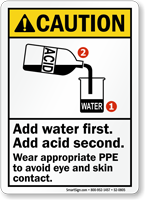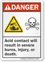 Acid warning signs alert workers to the presence of corrosive acids. They use headers from our osha danger signs or "corrosive" labels and often include instructions for specific PPE. View the full range in our acid warning signs category.