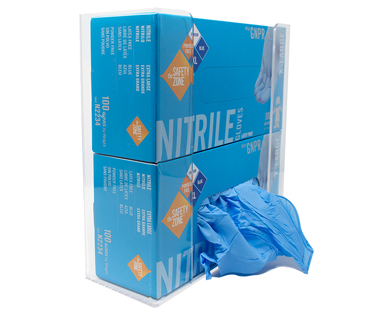 These are clear, wall-mounted holders designed to organize and dispense personal protective equipment such as safety glasses, earplugs, gloves, and hairnets. You can find our full range of acrylic ppe dispensers here.