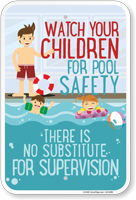 If you're a pool manager, you cannot legally operate your swimming pool without Adult Supervision Pool Signs or signs specifically denoting that children will be watched. With the obvious hazards of a swimming pool, it is never safe to swim alone, especially for children. Adult Supervision Pool Signs guarantee safe practices at your pool from parents and children alike.