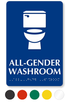 Yes, many designs use a split-figure icon, a combined male/female/transgender symbol, or a simple toilet icon to communicate inclusivity. You can customize the graphics and text to match your brand's voice using our custom braille signs tool.