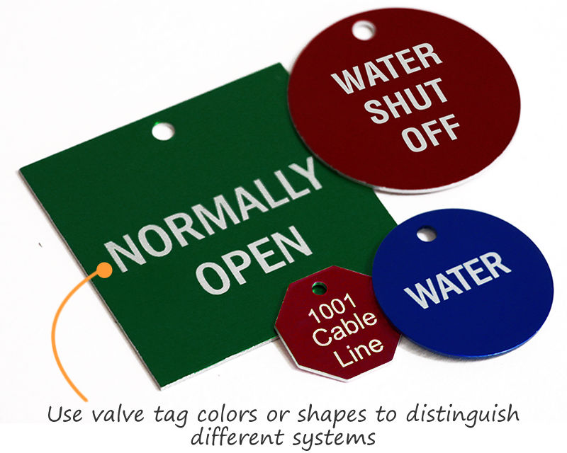 Order durable aluminum valve tags in a range of legends, shapes, colors and sizes for your home or facility. The anodized process offers extra protection for your tags.
