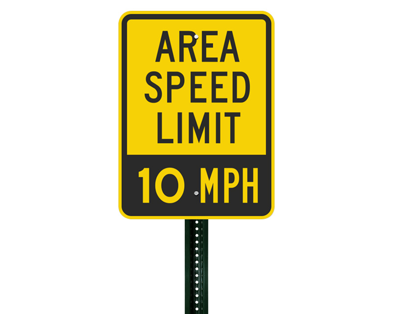 They are best for gated communities, industrial parks, university campuses, and residential subdivisions with uniform speed regulations. For example, a community may use a 25 MPH sign at the main entrance with an "Area" plaque to cover all internal side streets.