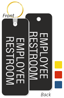 • • Stock restroom key chains feature print on one side. With our Custom Bathroom Key Chains, we offer the option to print your message on both sides.