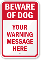 You may also want to think about the sign material. Our beware-of-dog signs are available in plastic, standard and superior grade reflective aluminum, vinyl, and as adhesive labels.