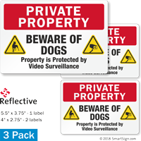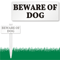 You may also want to think about the sign material. Our beware-of-dog signs are available in plastic, standard and superior grade reflective aluminum, vinyl, and as adhesive labels.