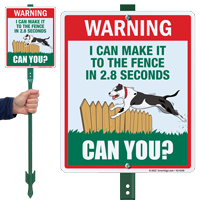 If regular signs are not working for you, try beware-of-dog signs with stricter warnings. Even better, go for our funny dog warning signs which instantly engage the onlookers with witty and hilarious messages, leading to increased compliance.
