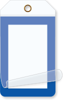 Size: 1.75" x 3.25" Material type: Self-Laminating Tag, 10 mil Vinyl and Clear Flap