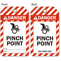 Place "Pinch Point" signs directly on the machine near the specific area where a hand or clothing could be caught. The closer the sign is to the hazard, the more effective it is. This immediate warning ensures that workers remain mindful of their hand placement during operation. Our pinch point do not operate with guards removed sign is purpose-built for direct machine mounting at the exact point of entanglement or crush risk.