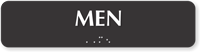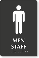 We use Grade 2 Braille on our men’s restroom signs to ensure they comply not only with Federal but with California specifications as well. These signs are tactile as well and have raised characters in compliance with ADA.