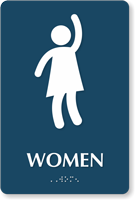 Most of our braille restroom signs meet ADA requirements. You may want to opt for Tactile Touch Braille Women’s Restroom Signs. They adhere to all ADA specifications, as follows-