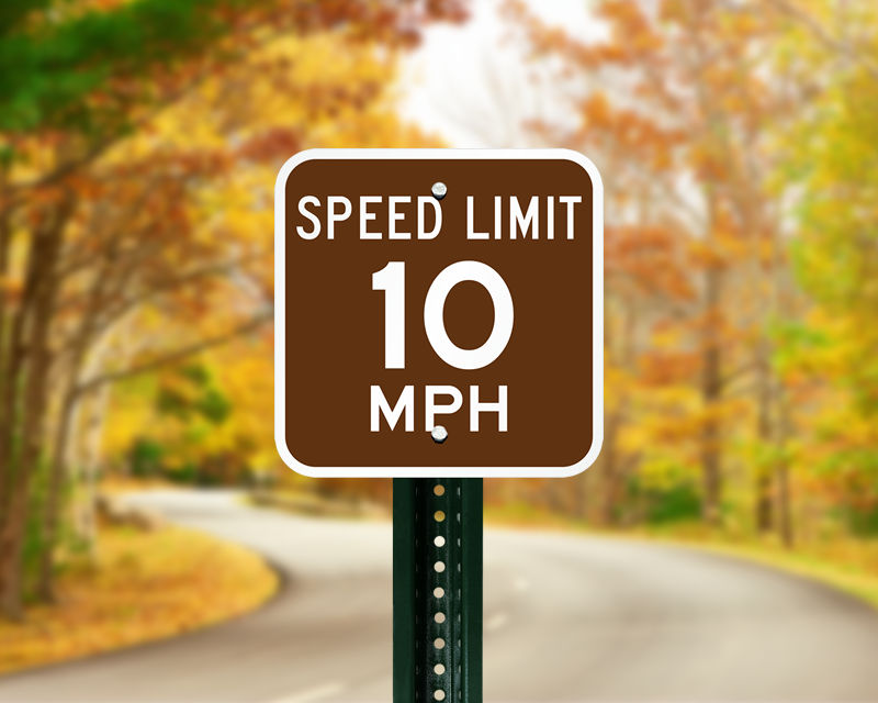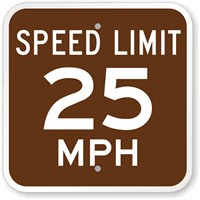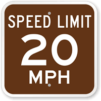 Campers need to drive slowly for the safety of other campers on foot and wildlife around. Place one of these speed limit signs in your campground and discourage speedy rides. Make sure recreational and cultural interest areas are safe from rash and uncontrolled drivers. Tough signs are built to withstand harsh weather conditions, chemical spills, fading and more. Click on any of the designs below for a quick view of price and features.