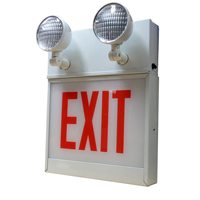Get the ultimate combination of Exit Sign and Emergency Light -- all in one unit. Attractive LED Exit Signs feature two or three lamp heads for illumination and a proper exit path. These units are remote capable, and we offer New York and Chicago Approved versions of our exit signs. Junior models are designed to save space while offering an attractive combination sign for your interior. A special enclosure protects against the worst elements, while LED lights require very little energy. Removable directional indicators are included with your Exit Sign, and all of our Combo Exit Sign meet NFPA Life Safety Code 101, NED, OSHA and local codes.