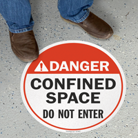 • • Use a Stand-up Floor Sign to prevent unauthorized personnel from entering confined spaces. Or, place a message on the ground with our adhesive Confined Space Floor Sign.