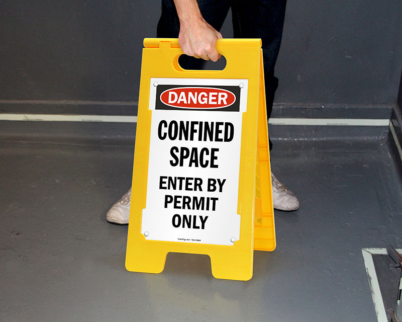 A confined space becomes permit-required if it contains a potential hazard, such as a hazardous atmosphere (toxic gas, low oxygen), a material that could engulf an entrant, or an internal shape that could trap someone. These hazards often require additional signage, such as hazardous fumes signs or chemical warning signs at the entry point.
