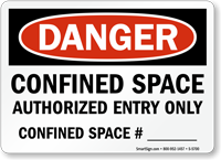 A confined space sign is a warning sign used to identify spaces that are large enough to enter but have limited means of entry or exit and are not designed for continuous occupancy, such as tanks, silos, or pits. For low-light situations, we offer GlowSmart confined space signs to ensure visibility.