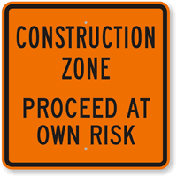 Created as per the ANSI and OSHA standards, construction zone signs are available in the DANGER, WARNING, and CAUTION headers to communicate the corresponding degree of safety risk.