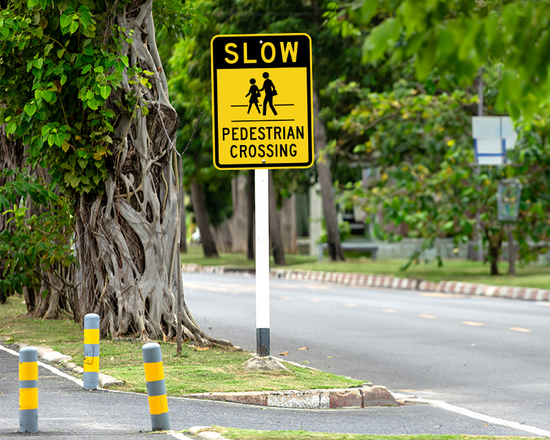 Yellow-background crossing signs work well. They are bright and bold enough for high day-time visibility and if you choose them in reflective options, the retroreflectivity will ensure a good night-time view as well. Fluorescent crossing signs take 24-hour visibility to the next level. These signs are highly visible at night and also extremely conspicuous at dawn and during early evening times. Additionally, certain signs such as pedestrian, bicycle, school, and guide signs should have a fluorescent yellow-green background as indicated in this MUTCD Table and detailed in the respective chapters and sections. Most crossing signs in the yellow background can be substituted for fluorescent-green in MUTCD guidelines.