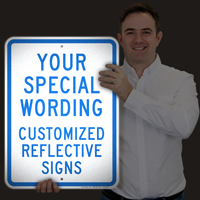 Made from 80 mil thick aluminum with a 3M High Intensity (HIP) reflective surface, our designer custom reflective signs easily last for over seven years. These come with pre-drilled, pre-cleared mounting holes that facilitate hassle-free installation.