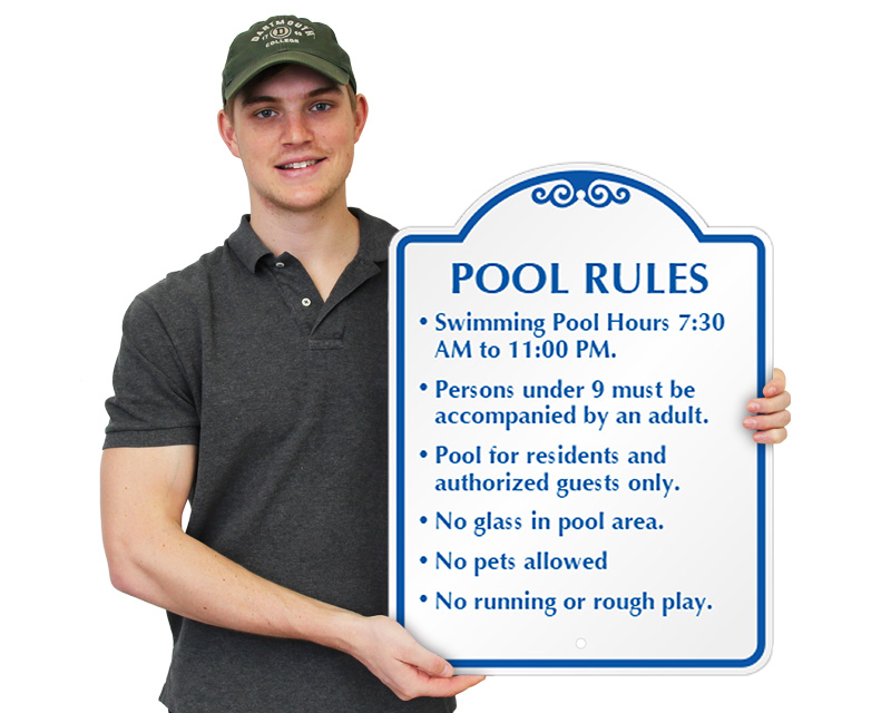 Someone needs to be in charge. Use Custom Rules Signs to make sure everyone knows the rules, and to prevent surprises, especially in the pool area.