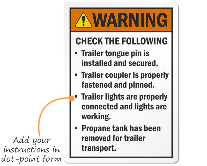 • • Adding a symbol makes your custom warning label stand out and become more quickly understood. You will be able to select from our library of professional symbols.