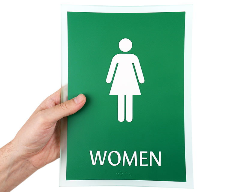 Deco Bathroom Signs suit the contemporary interior of your office. Our classic art-deco design features a smudge-resistant, blended stone plate on an acrylic background. Sturdy signs survive harsh conditions.