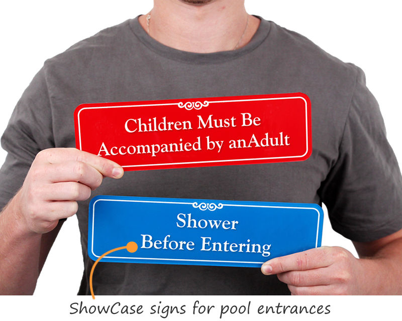Decorative Pool Signs offer the perfect blend of value and quality! Want to save your swimming pool from unwanted activities? The architecturally designed Pool Signs from our SignatureSign™ collection are the perfect solution! Often people don’t realize the dangerous and unhygienic conditions at the poolside. Decorative Pool Safety Signs will help remind bathers of the rules.