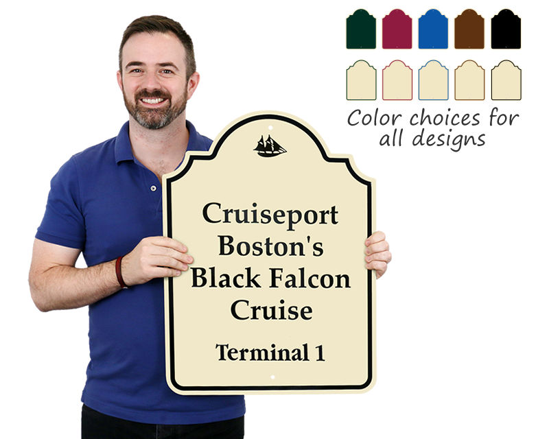 Order unique, stylish signs to match your contemporary property. Crafted custom metal signs feature modern profiles that set them apart from generic traffic sign shapes.