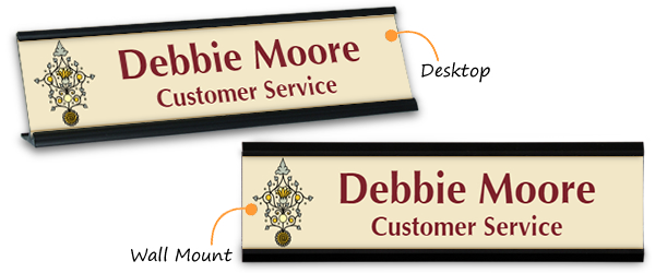 Enter the name for your nameplate. Then, select a typestyle for your text. For more information click on the