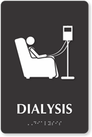 Signs like these help patrons and staff find critical care areas like the Dialysis room swiftly.