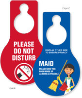 Most of our do not disturb door signs are printed on both sides, either with the same text or different text. This information is available on the respective product pages and is also noticeable in the product pictures.