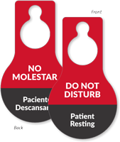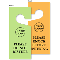 Custom plastic door hang tags are a quick and easy way to personalize a do not disturb door hanger. We offer these in two styles — claw and circle-bottom. You may create your perfect do not disturb hang tag by entering your text, selecting the colors and fonts, and choosing/uploading a graphic. Alternatively, you may send us your artwork at customerservice@smartsign.com and we’ll convert your sketch at no extra charge.