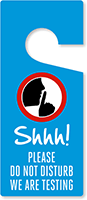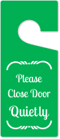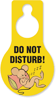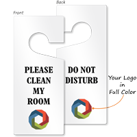 Custom plastic door hang tags are a quick and easy way to personalize a do not disturb door hanger. We offer these in two styles — claw and circle-bottom. You may create your perfect do not disturb hang tag by entering your text, selecting the colors and fonts, and choosing/uploading a graphic. Alternatively, you may send us your artwork at customerservice@smartsign.com and we’ll convert your sketch at no extra charge.