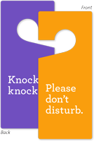 Our do not disturb door hang tags are made using durable plastic and printed in full color. These are available in two formats — 15 mil thick vinyl and 30 mil thick vinyl that is thermally laminated. These tags are digitally printed with long-lasting UV-resistant inks that prevent fading and discoloration over time. You may use our door hangers indoors or outdoors.
