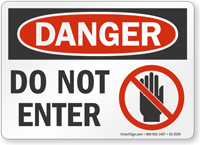 Do Not Enter Signs are not only for the roads. These signs also help you prohibit access to dangerous areas like confined spaces, chemical storage areas, electrical rooms, radiation areas, construction zones, and more. Do Not Enter Safety Signs protect untrained personnel from entering hazardous locations in your facility and reduce your liability in case of an accident. Using strict language for Do Not Enter Signs helps reinforce compliance in unsafe areas.