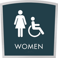 Our signature Apex sign series features a classic arched shape, with a brushed metallic back plate and a faceplate of hand-painted acrylic. With several color combinations to choose from, your Apex sign will enrich and enhance any decor with its bold design. Complete with Grade II Braille, these ADA compliant signs are bound to impress.