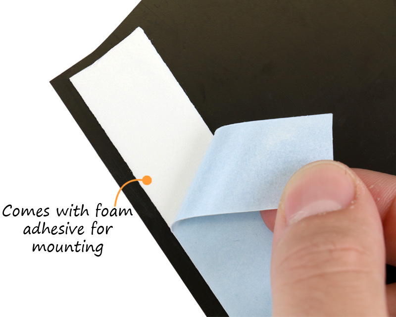• • Easy installation with double-sided adhesive on the back of each sign.