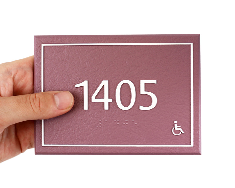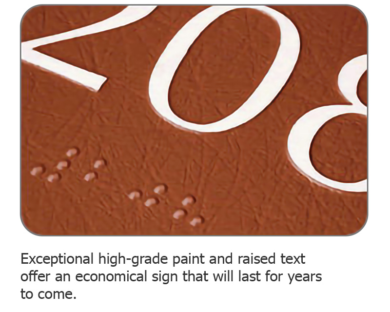 Our signature LeatherTex signs effortlessly blend texture and durability. We offer raised Braille text and graphics, with easy installation and a classic look.