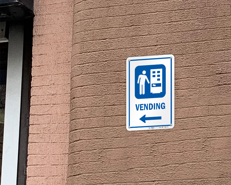 Often, vending machines are not in plain sight - a sign makes any location easy to find.