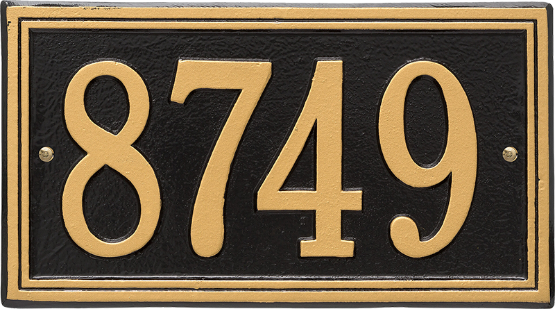 The Double Line Standard Wall One Line Address Plaque has a classic frame design that will display your address in style. The address plaque is hand crafted from rust-free cast aluminum - guaranteeing excellent quality and durability.