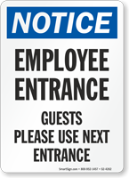 Our Employee Entrance Signs and Employees Only Signs allow you to keep your facility or workplace safe and secure, as well as limit your liability.