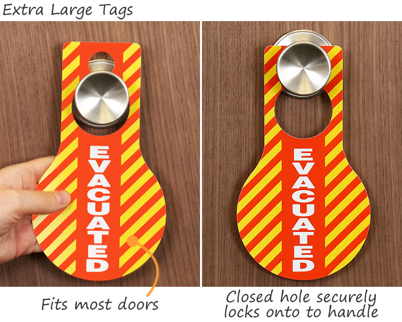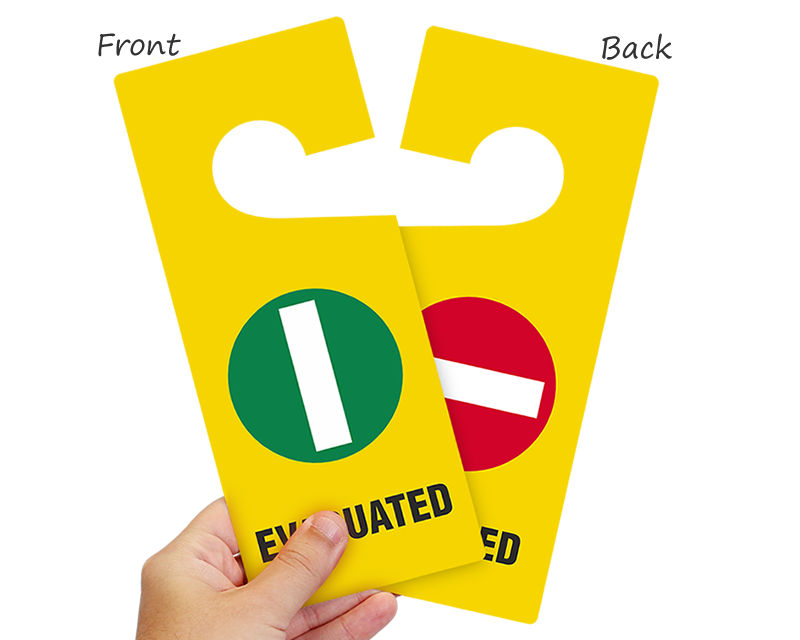 Don’t risk missing an important room check. Evacuated Door Hangers instantly identify rooms that have been checked. Tags are printed on both sides. Several materials are available.