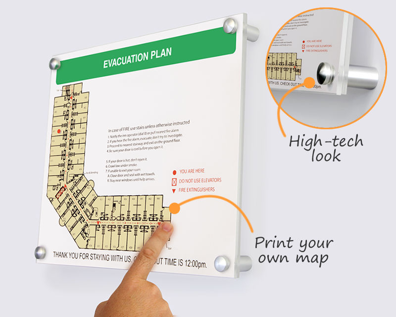 Design an attractive plan with one of our helpful map holders. Clearly displaying your signs in the hall means that everyone knows where to go and what to do in case of an emergency.