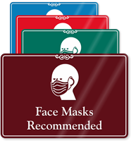 Masks should be worn in all public spaces, both indoors and outdoors, and particularly in situations where following the other social distancing practices may not be possible. Whenever interacting with people not from your household, wearing a mask is recommended. Customers can be easily prompted to wear masks through well-placed sign reminders. Face mask signs could be placed anywhere inside the facility especially entrances, and also on sidewalks, open waiting areas, outdoor seating, etc.